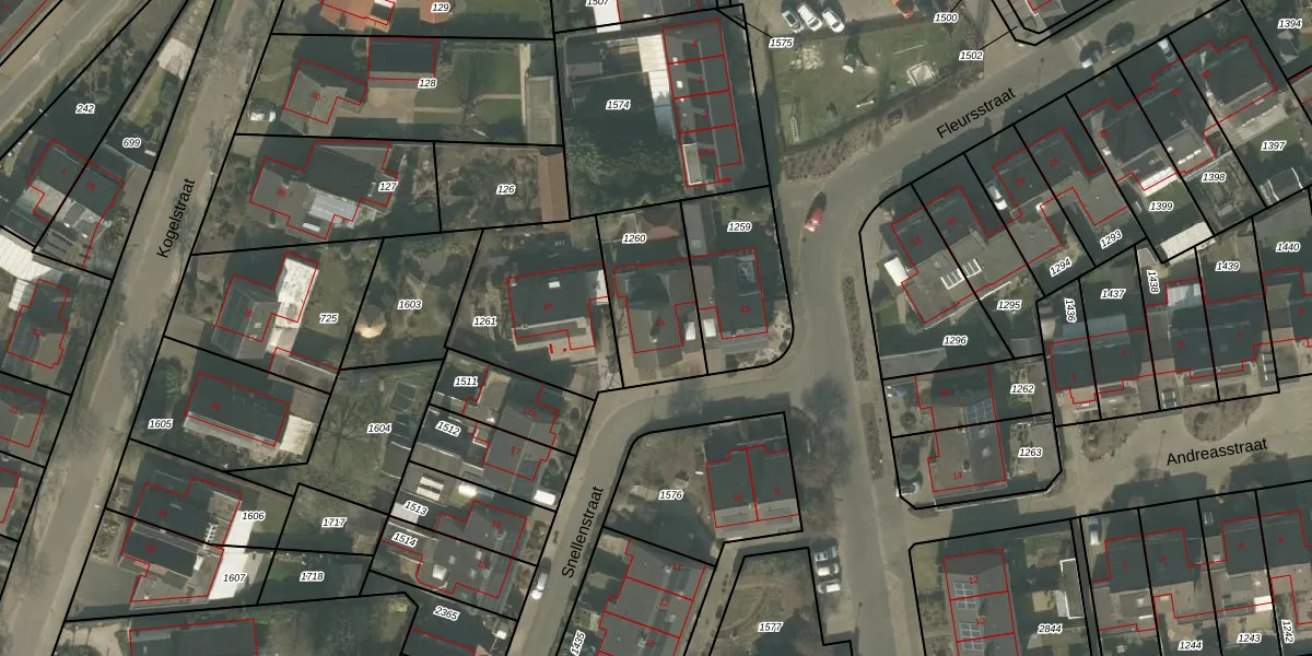 Gebruik de zoekbalk of klik op een perceel voor informatie over de adressen binnen dit perceel.