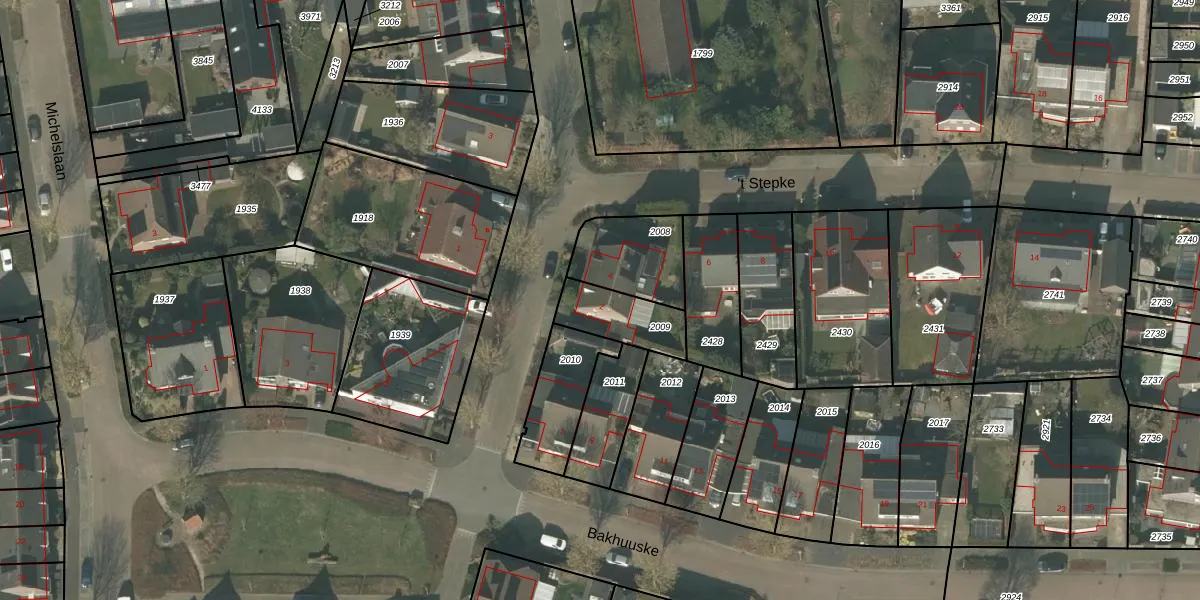 Gebruik de zoekbalk of klik op een perceel voor informatie over de adressen binnen dit perceel.