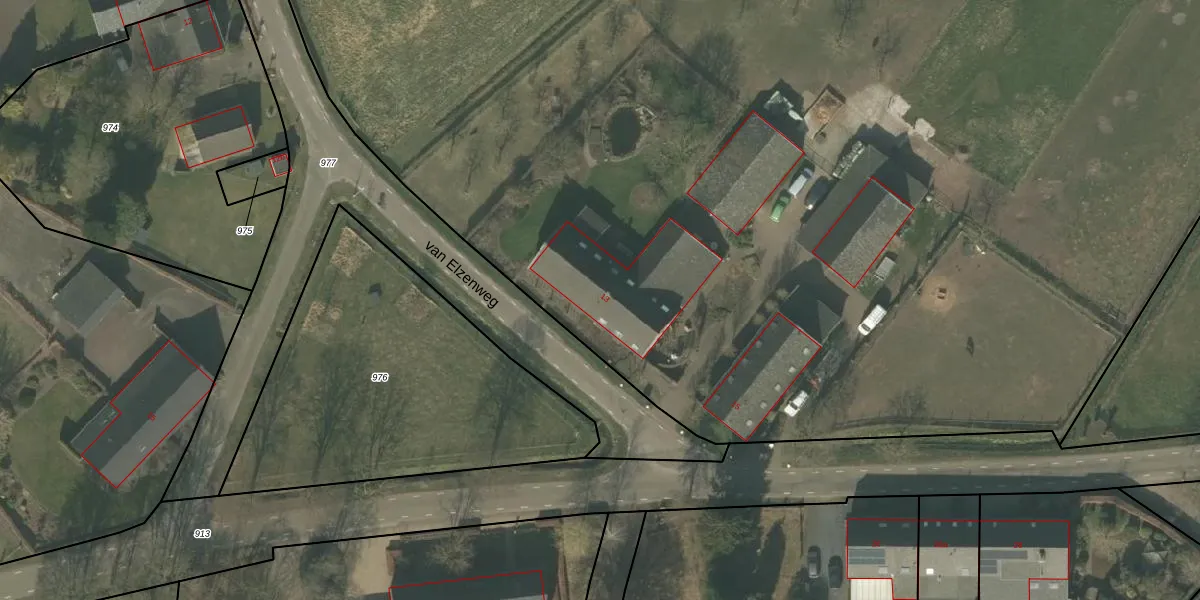 Het perceel waarop van Elzenweg 13 staat heeft een oppervlakte van 4,9 ha. Dit is een zeer groot perceel. De perceeloppervlakte wordt geregistreerd door het Kadaster. Gedetailleerde informatie over de maten van dit perceel kunt u vinden in het rapport Kadastrale kaart met maatvoering van van Elzenweg 13.