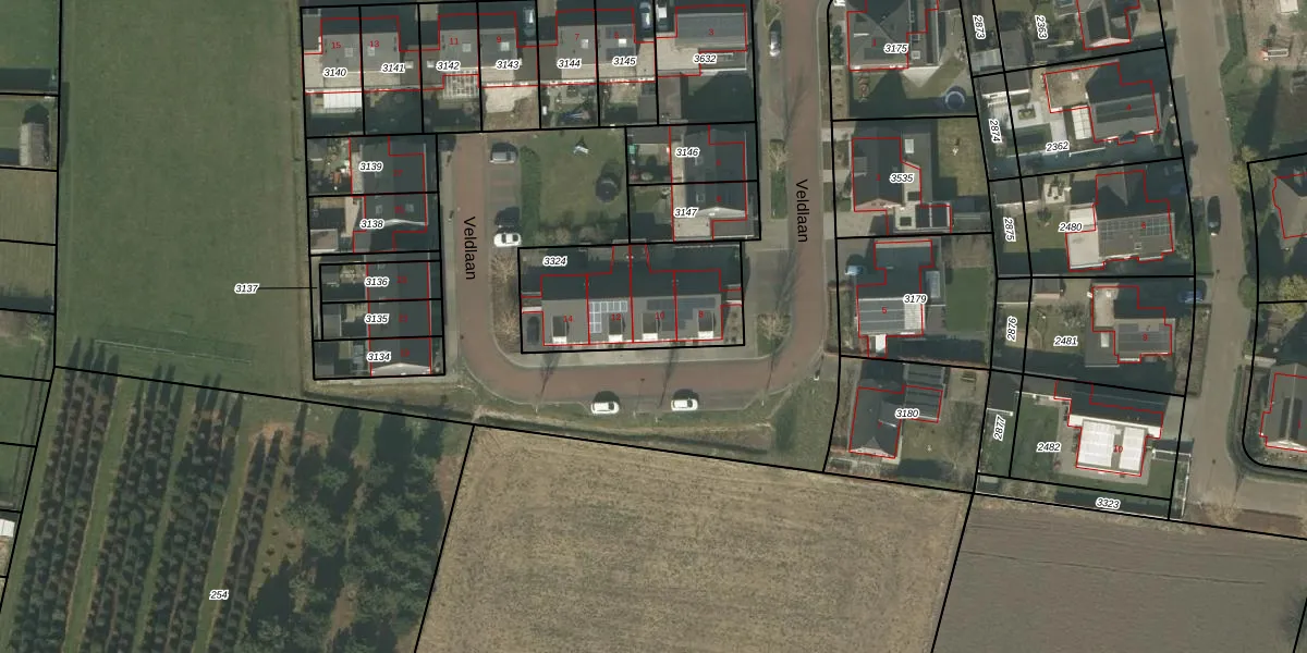 Veldlaan 10 is gelegen op kadastraal perceel HOR01M3324. Deze kadastrale aanduiding is uniek en wordt gebruikt door het Kadaster om eigendomsrechten en andere zakelijke rechten vast te leggen. Het perceel maakt onderdeel uit van de kadastrale gemeente Horst.