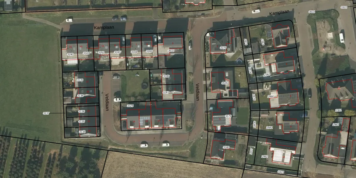 Het perceel waarop Veldlaan 6 staat heeft een oppervlakte van 180 m². Dit is een middelgroot perceel. De perceeloppervlakte wordt geregistreerd door het Kadaster. Gedetailleerde informatie over de maten van dit perceel kunt u vinden in het rapport Kadastrale kaart met maatvoering van Veldlaan 6.