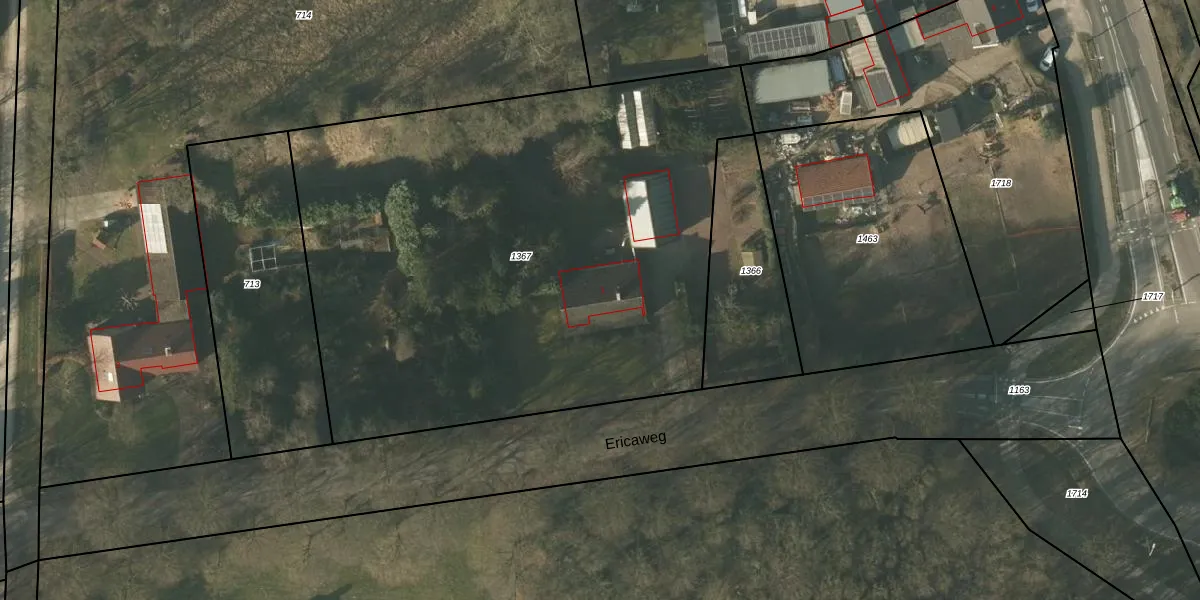 Ericaweg 1 is gelegen op kadastraal perceel RGL00H1367. Deze kadastrale aanduiding is uniek en wordt gebruikt door het Kadaster om eigendomsrechten en andere zakelijke rechten vast te leggen. Het perceel maakt onderdeel uit van de kadastrale gemeente Roggel.