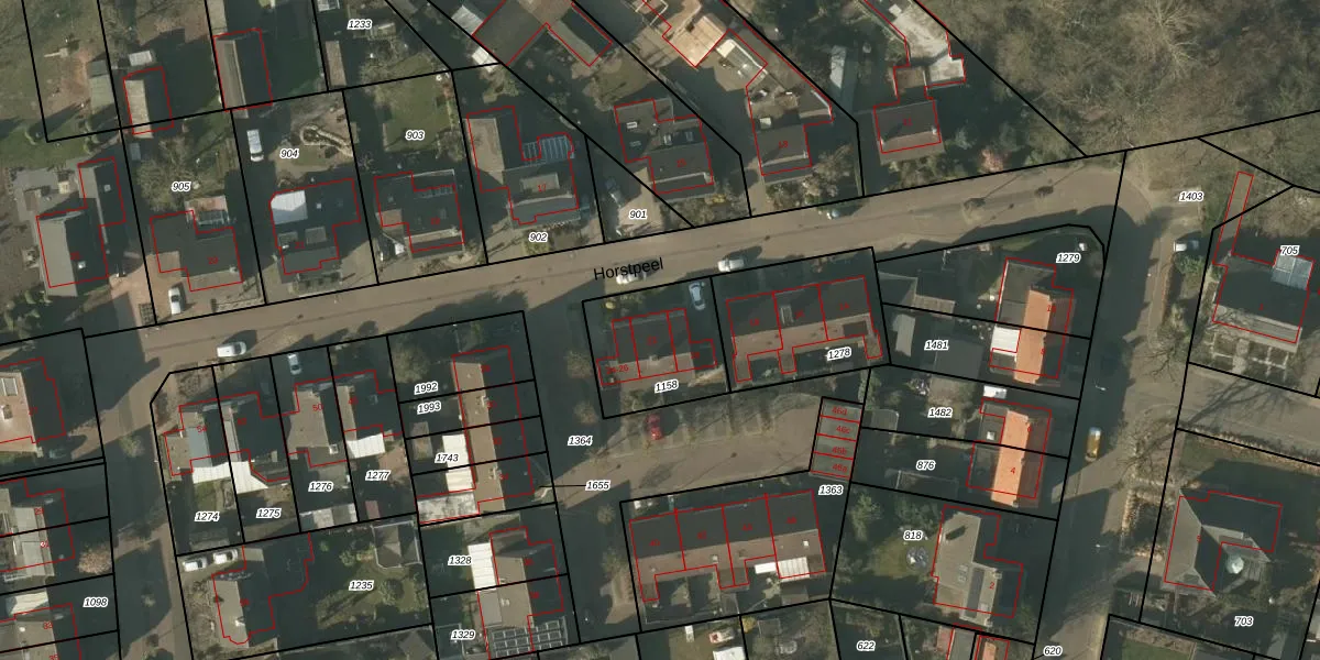 Het perceel waarop Horstpeel 22 staat heeft een oppervlakte van 355 m². Dit is een groot perceel. De perceeloppervlakte wordt geregistreerd door het Kadaster. Gedetailleerde informatie over de maten van dit perceel kunt u vinden in het rapport Kadastrale kaart met maatvoering van Horstpeel 22.