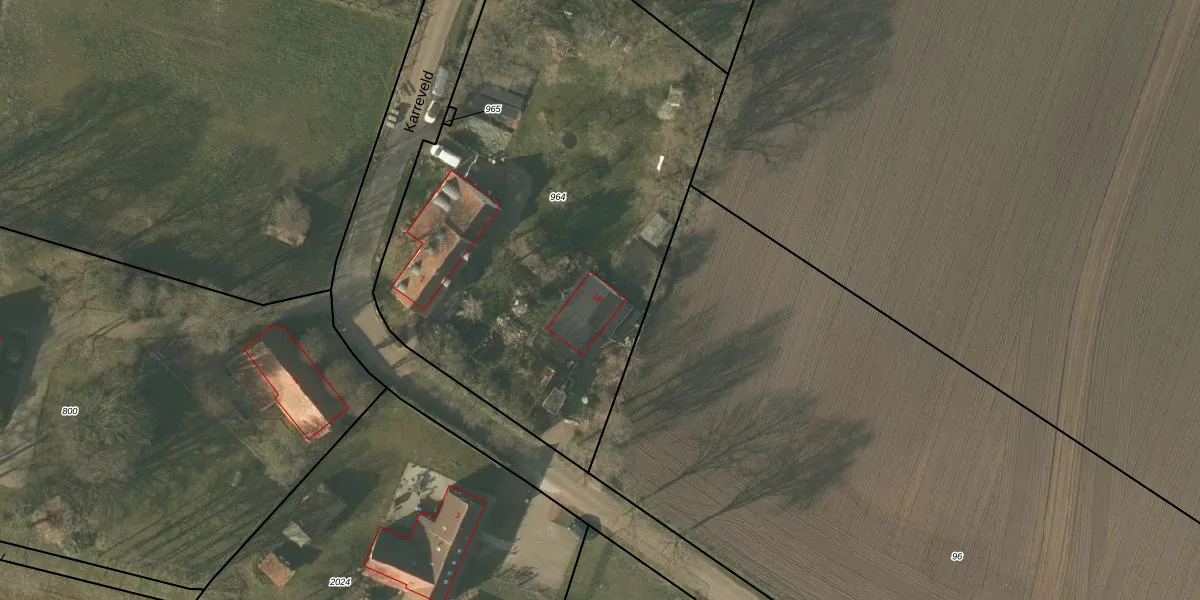 Het perceel waarop Karreveld 1-b staat heeft een oppervlakte van 3087 m². Dit is een zeer groot perceel. De perceeloppervlakte wordt geregistreerd door het Kadaster. Gedetailleerde informatie over de maten van dit perceel kunt u vinden in het rapport Kadastrale kaart met maatvoering van Karreveld 1-b.