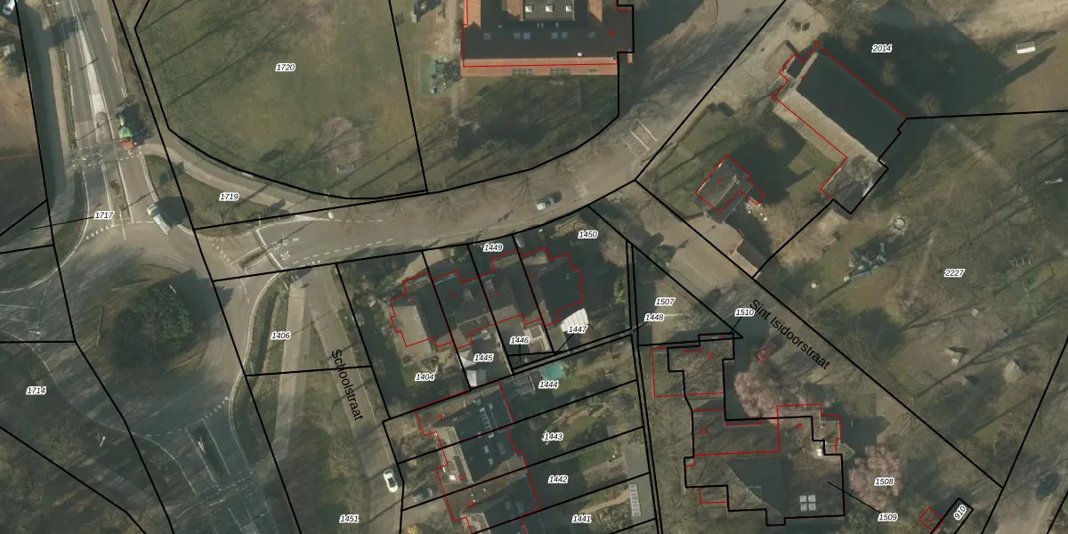 Schoolstraat 1 is gelegen op kadastraal perceel RGL00H1450. Deze kadastrale aanduiding is uniek en wordt gebruikt door het Kadaster om eigendomsrechten en andere zakelijke rechten vast te leggen. Het perceel maakt onderdeel uit van de kadastrale gemeente Roggel.