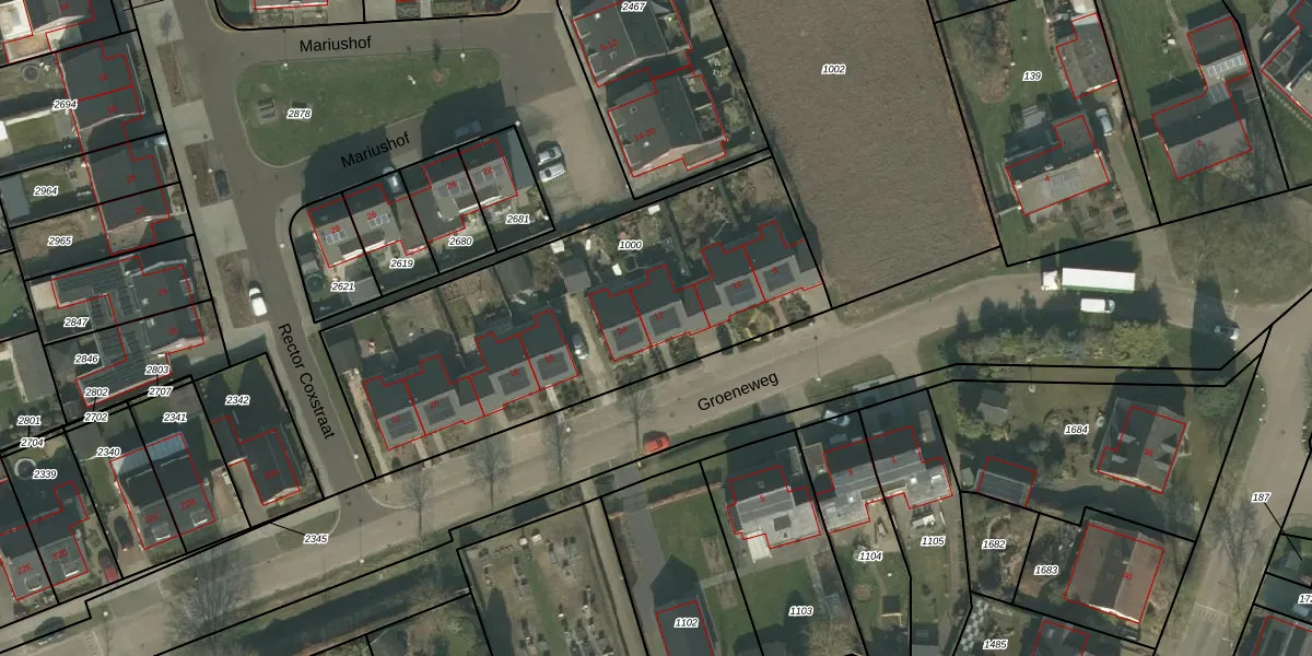Groeneweg 12 is gelegen op kadastraal perceel VRY00N1000. Deze kadastrale aanduiding is uniek en wordt gebruikt door het Kadaster om eigendomsrechten en andere zakelijke rechten vast te leggen. Het perceel maakt onderdeel uit van de kadastrale gemeente Venray.