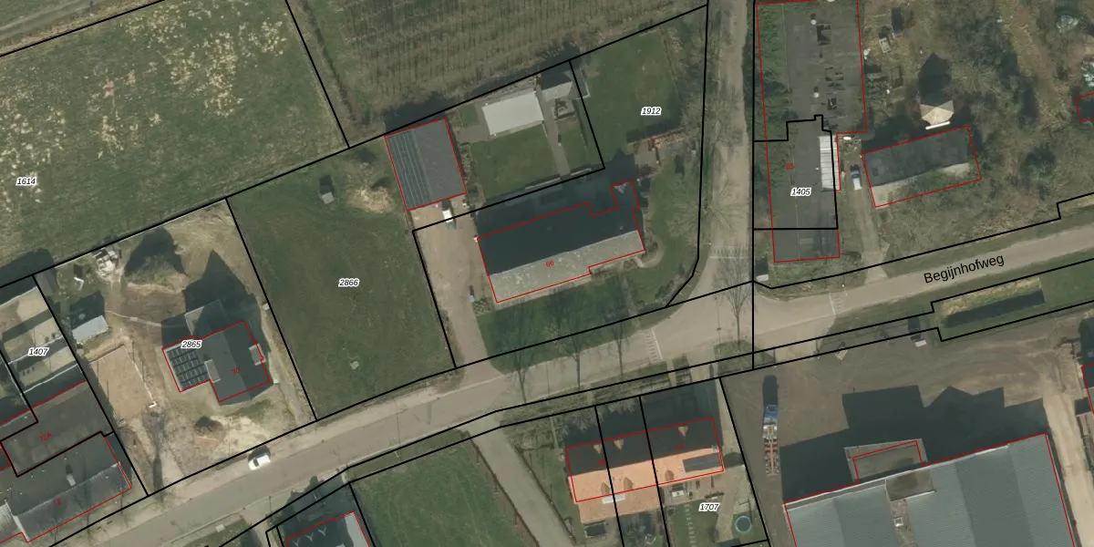Het perceel waarop Heidseweg 66 staat heeft een oppervlakte van 1840 m². Dit is een zeer groot perceel. De perceeloppervlakte wordt geregistreerd door het Kadaster. Gedetailleerde informatie over de maten van dit perceel kunt u vinden in het rapport Kadastrale kaart met maatvoering van Heidseweg 66.