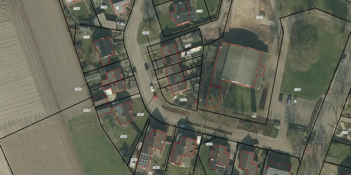 Meester Driessensstraat 2 is gelegen op kadastraal perceel VRY00N2043. Deze kadastrale aanduiding is uniek en wordt gebruikt door het Kadaster om eigendomsrechten en andere zakelijke rechten vast te leggen. Het perceel maakt onderdeel uit van de kadastrale gemeente Venray.