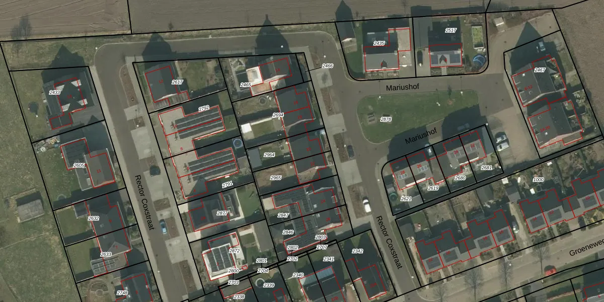Gebruik de zoekbalk of klik op een perceel voor informatie over de adressen binnen dit perceel.