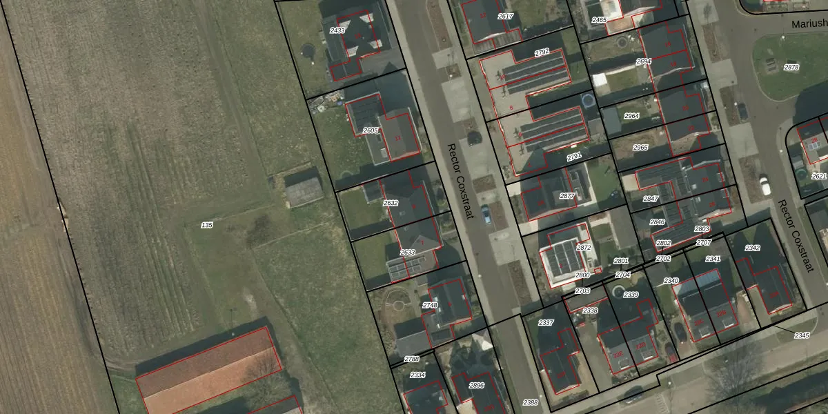 Gebruik de zoekbalk of klik op een perceel voor informatie over de adressen binnen dit perceel.
