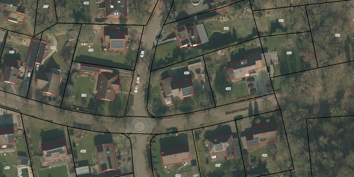 Gebruik de zoekbalk of klik op een perceel voor informatie over de adressen binnen dit perceel.