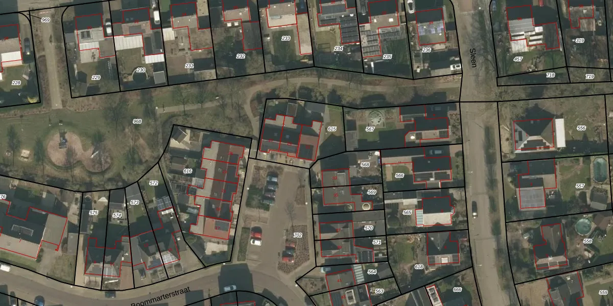 Boommarterstraat 31 is gelegen op kadastraal perceel GNP00G615. Deze kadastrale aanduiding is uniek en wordt gebruikt door het Kadaster om eigendomsrechten en andere zakelijke rechten vast te leggen. Het perceel maakt onderdeel uit van de kadastrale gemeente Gennep.