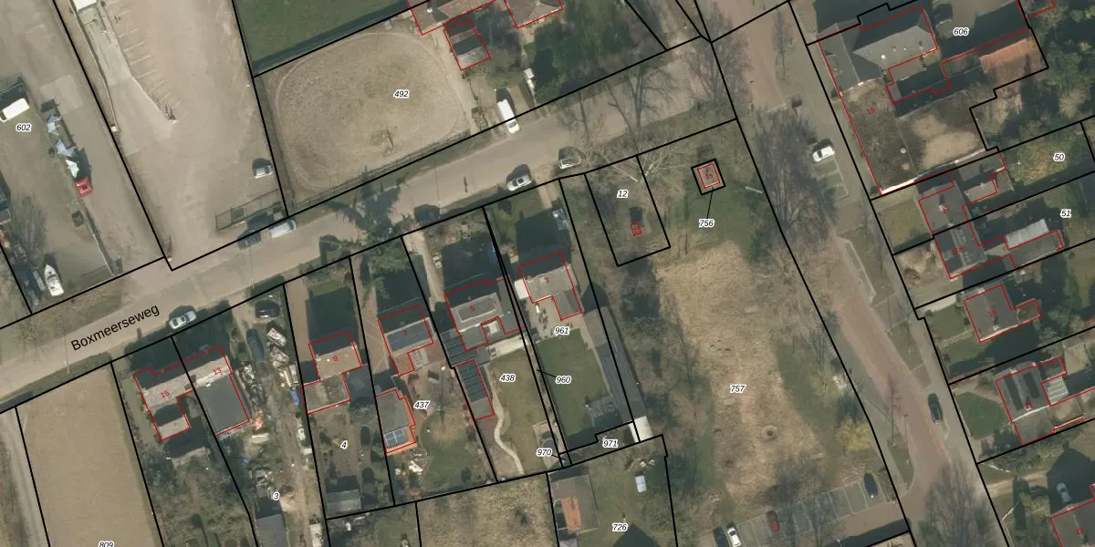 Boxmeerseweg 3 is gelegen op kadastraal perceel GNP00G961. Deze kadastrale aanduiding is uniek en wordt gebruikt door het Kadaster om eigendomsrechten en andere zakelijke rechten vast te leggen. Het perceel maakt onderdeel uit van de kadastrale gemeente Gennep.
