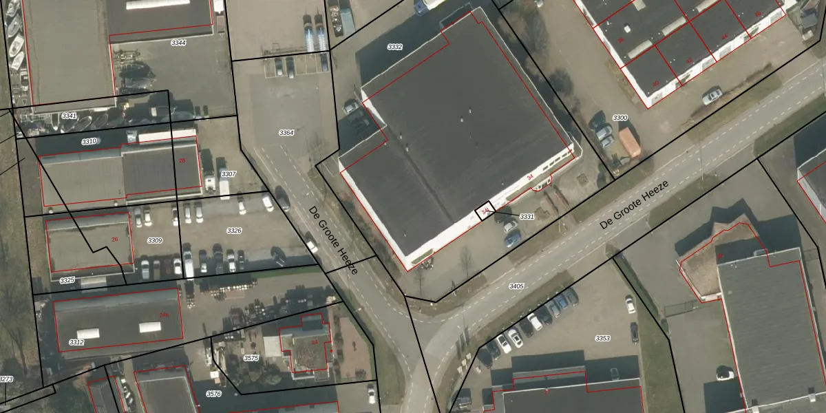 Het perceel waarop De Groote Heeze 34-a staat heeft een oppervlakte van 3462 m². Dit is een zeer groot perceel. De perceeloppervlakte wordt geregistreerd door het Kadaster. Gedetailleerde informatie over de maten van dit perceel kunt u vinden in het rapport Kadastrale kaart met maatvoering van De Groote Heeze 34-a.