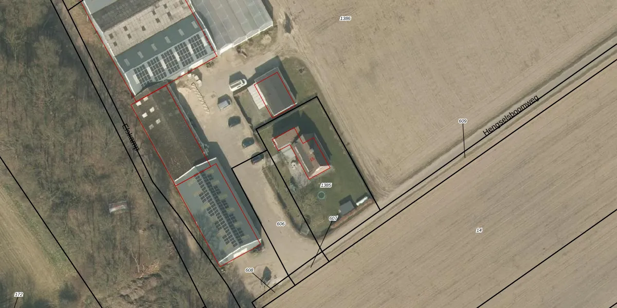 Het perceel waarop Elskamp 15 staat heeft een oppervlakte van 990 m². Dit is een groot perceel. De perceeloppervlakte wordt geregistreerd door het Kadaster. Gedetailleerde informatie over de maten van dit perceel kunt u vinden in het rapport Kadastrale kaart met maatvoering van Elskamp 15.
