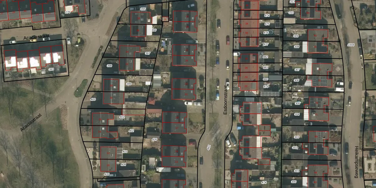 Het perceel waarop Esdoornstraat 21 staat heeft een oppervlakte van 4280 m². Dit is een zeer groot perceel. De perceeloppervlakte wordt geregistreerd door het Kadaster. Gedetailleerde informatie over de maten van dit perceel kunt u vinden in het rapport Kadastrale kaart met maatvoering van Esdoornstraat 21.