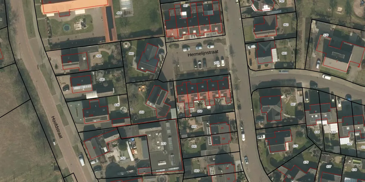 Het perceel waarop Hermelijnstraat 16 staat heeft een oppervlakte van 660 m². Dit is een groot perceel. De perceeloppervlakte wordt geregistreerd door het Kadaster. Gedetailleerde informatie over de maten van dit perceel kunt u vinden in het rapport Kadastrale kaart met maatvoering van Hermelijnstraat 16.