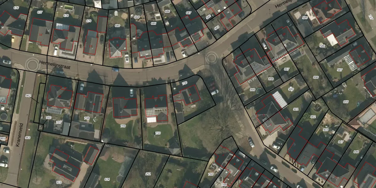 Het perceel waarop Hermelijnstraat 46 staat heeft een oppervlakte van 402 m². Dit is een groot perceel. De perceeloppervlakte wordt geregistreerd door het Kadaster. Gedetailleerde informatie over de maten van dit perceel kunt u vinden in het rapport Kadastrale kaart met maatvoering van Hermelijnstraat 46.