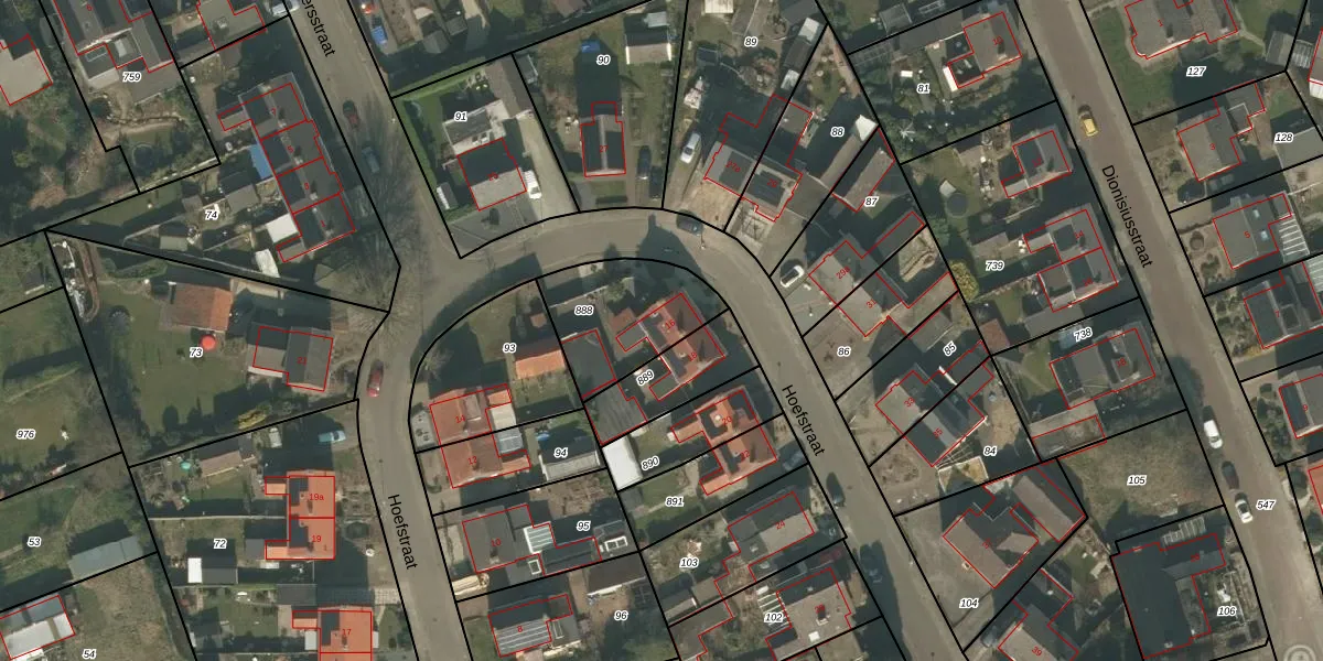 Het perceel waarop Hoefstraat 16 staat heeft een oppervlakte van 370 m². Dit is een groot perceel. De perceeloppervlakte wordt geregistreerd door het Kadaster. Gedetailleerde informatie over de maten van dit perceel kunt u vinden in het rapport Kadastrale kaart met maatvoering van Hoefstraat 16.