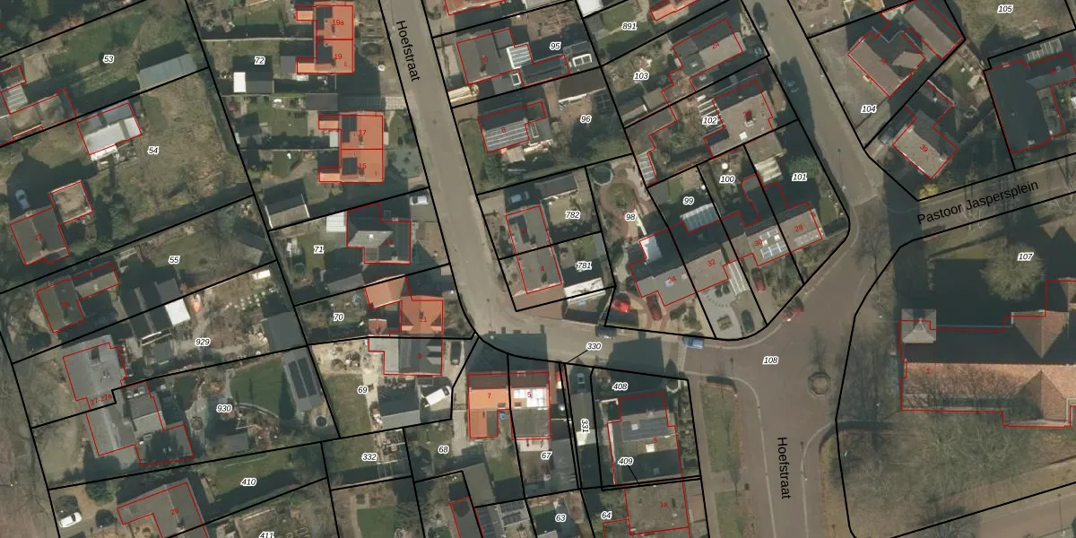 Gebruik de zoekbalk of klik op een perceel voor informatie over de adressen binnen dit perceel.