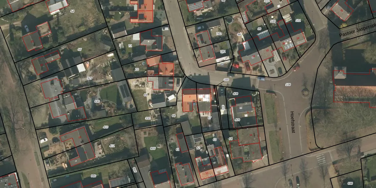 Hoefstraat 7 is gelegen op kadastraal perceel GNP00G68. Deze kadastrale aanduiding is uniek en wordt gebruikt door het Kadaster om eigendomsrechten en andere zakelijke rechten vast te leggen. Het perceel maakt onderdeel uit van de kadastrale gemeente Gennep.