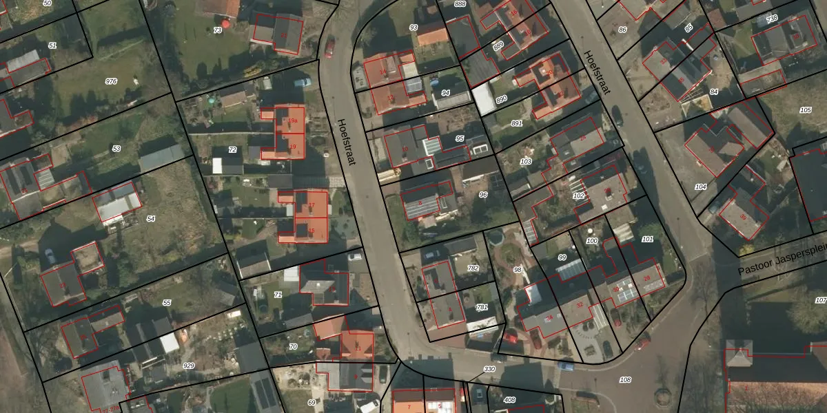 Gebruik de zoekbalk of klik op een perceel voor informatie over de adressen binnen dit perceel.