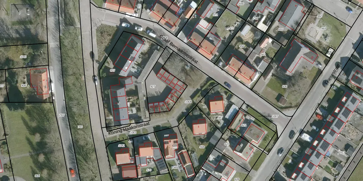 Het perceel waarop Koning Haakonstraat 2-b staat heeft een oppervlakte van 450 m². Dit is een groot perceel. De perceeloppervlakte wordt geregistreerd door het Kadaster. Gedetailleerde informatie over de maten van dit perceel kunt u vinden in het rapport Kadastrale kaart met maatvoering van Koning Haakonstraat 2-b.