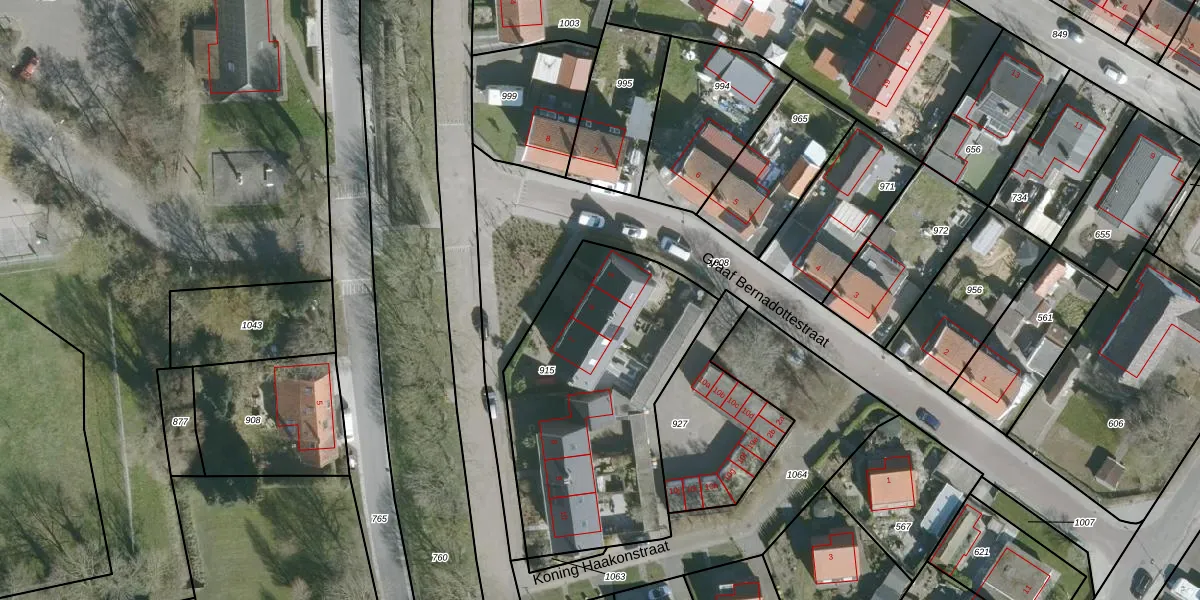 Het perceel waarop Veluwestraat 6 staat heeft een oppervlakte van 1250 m². Dit is een zeer groot perceel. De perceeloppervlakte wordt geregistreerd door het Kadaster. Gedetailleerde informatie over de maten van dit perceel kunt u vinden in het rapport Kadastrale kaart met maatvoering van Veluwestraat 6.