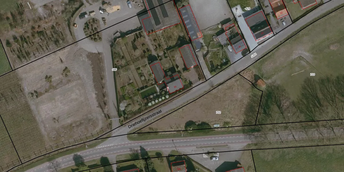 Driehoefijzersstraat 20 is gelegen op kadastraal perceel HUL00N586. Deze kadastrale aanduiding is uniek en wordt gebruikt door het Kadaster om eigendomsrechten en andere zakelijke rechten vast te leggen. Het perceel maakt onderdeel uit van de kadastrale gemeente Hulst.