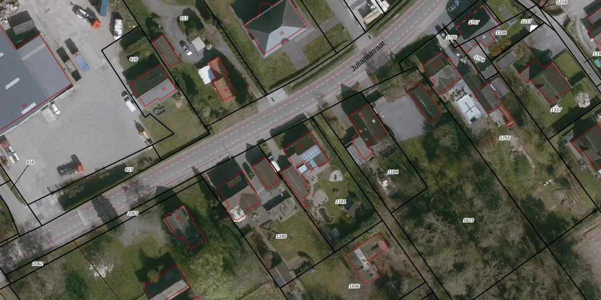 Julianastraat 45 is gelegen op kadastraal perceel HUL00S1181. Deze kadastrale aanduiding is uniek en wordt gebruikt door het Kadaster om eigendomsrechten en andere zakelijke rechten vast te leggen. Het perceel maakt onderdeel uit van de kadastrale gemeente Hulst.