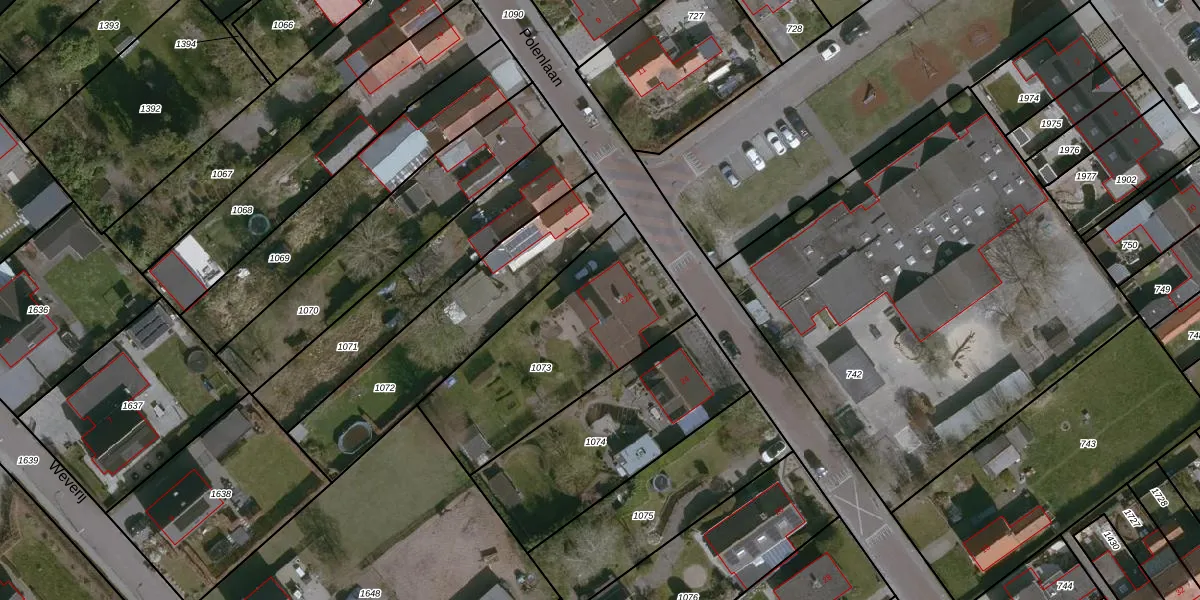 Het perceel waarop Polenlaan 22-A staat heeft een oppervlakte van 825 m². Dit is een groot perceel. De perceeloppervlakte wordt geregistreerd door het Kadaster. Gedetailleerde informatie over de maten van dit perceel kunt u vinden in het rapport Kadastrale kaart met maatvoering van Polenlaan 22-A.