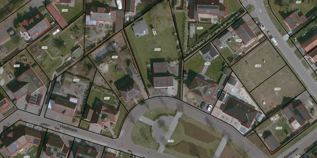 Het perceel waarop Vlasbloem 13 staat heeft een oppervlakte van 1621 m². Dit is een zeer groot perceel. De perceeloppervlakte wordt geregistreerd door het Kadaster. Gedetailleerde informatie over de maten van dit perceel kunt u vinden in het rapport Kadastrale kaart met maatvoering van Vlasbloem 13.