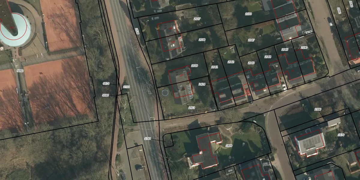 Het adres is gelegen op perceel 2413 in de sectie H en de kadastrale gemeente Groesbeek. De kadastrale aanduiding is aldus GBK00-H-2413. De gemiddelde perceelgrootte in Groesbeek is 4188,64 m². Dit perceel is kleiner: de perceeloppervlakte bedraagt 561 m². Het kleinste perceel in de kadastrale gemeente is 0 m² groot. De grootste perceeloppervlakte is 99,9 ha. Er zijn geen andere adressen aanwezig op het perceel. De huidige grenzen van het perceel zijn digitaal in de Basisregistratie Kadaster (BRK) geregistreerd op 21-07-2003.