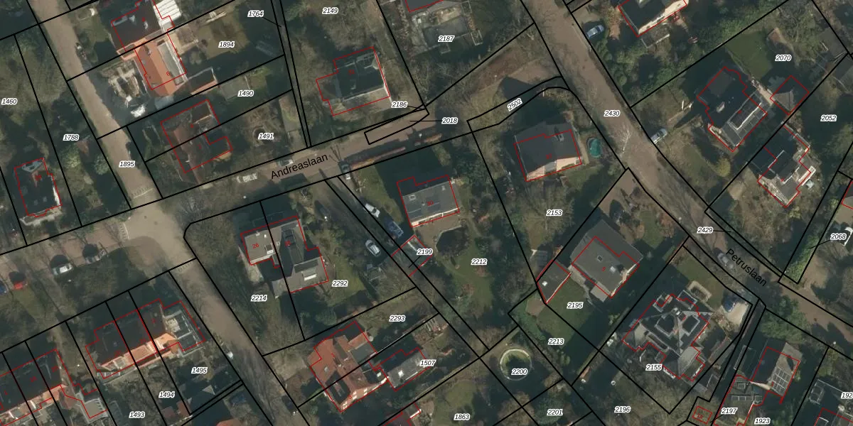 Het perceel waarop Andreaslaan 30 staat heeft een oppervlakte van 1145 m². Dit is een zeer groot perceel. De perceeloppervlakte wordt geregistreerd door het Kadaster. Gedetailleerde informatie over de maten van dit perceel kunt u vinden in het rapport Kadastrale kaart met maatvoering van Andreaslaan 30.