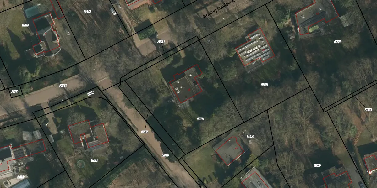 Koning Davidlaan 18 is gelegen op kadastraal perceel GBK00H1562. Deze kadastrale aanduiding is uniek en wordt gebruikt door het Kadaster om eigendomsrechten en andere zakelijke rechten vast te leggen. Het perceel maakt onderdeel uit van de kadastrale gemeente Groesbeek.
