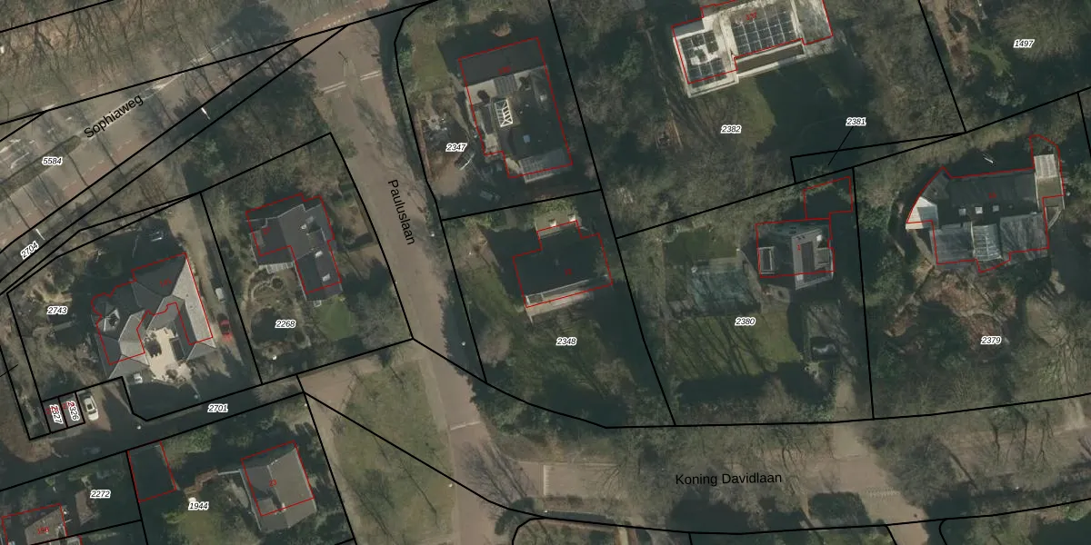 Het perceel waarop Pauluslaan 12 staat heeft een oppervlakte van 1210 m². Dit is een zeer groot perceel. De perceeloppervlakte wordt geregistreerd door het Kadaster. Gedetailleerde informatie over de maten van dit perceel kunt u vinden in het rapport Kadastrale kaart met maatvoering van Pauluslaan 12.