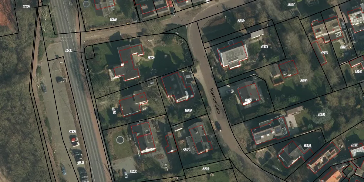 Rechterslaan 2 is gelegen op kadastraal perceel GBK00H2090. Deze kadastrale aanduiding is uniek en wordt gebruikt door het Kadaster om eigendomsrechten en andere zakelijke rechten vast te leggen. Het perceel maakt onderdeel uit van de kadastrale gemeente Groesbeek.