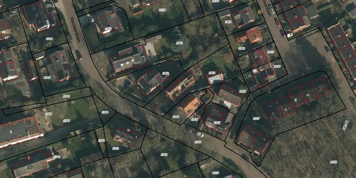 Het perceel waarop Rechterslaan 9 staat heeft een oppervlakte van 793 m². Dit is een groot perceel. De perceeloppervlakte wordt geregistreerd door het Kadaster. Gedetailleerde informatie over de maten van dit perceel kunt u vinden in het rapport Kadastrale kaart met maatvoering van Rechterslaan 9.