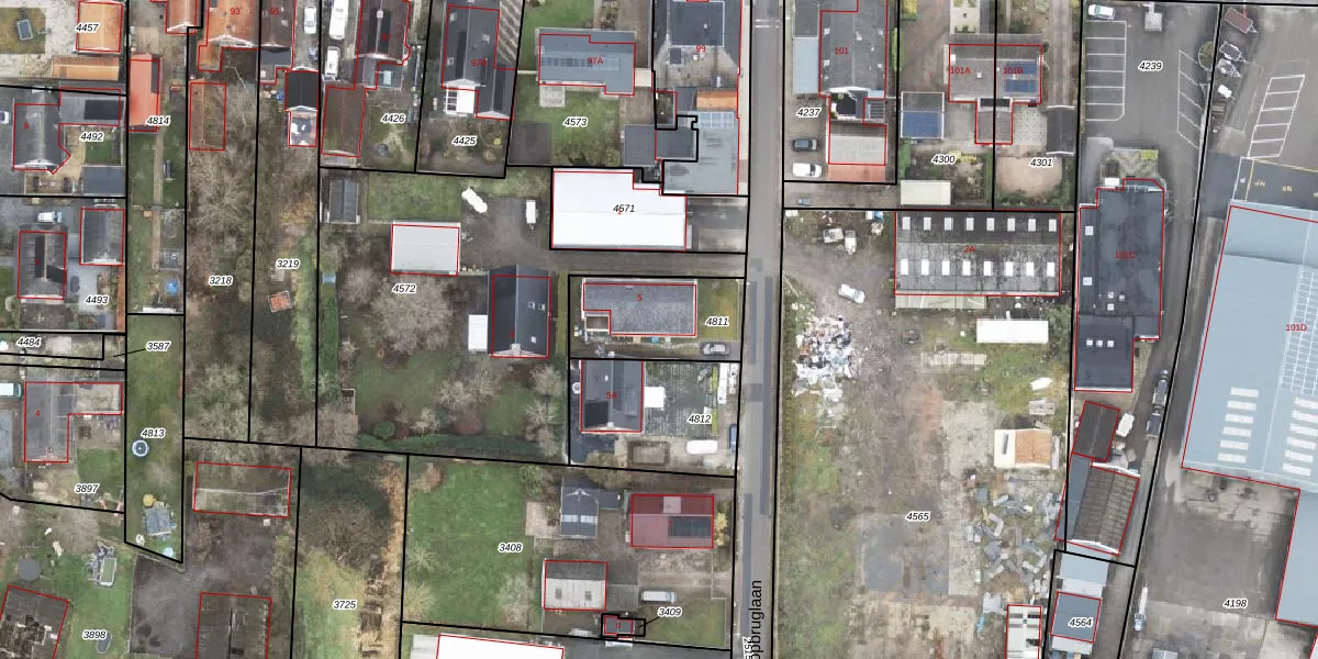 Gebruik de zoekbalk of klik op een perceel voor informatie over de adressen binnen dit perceel.