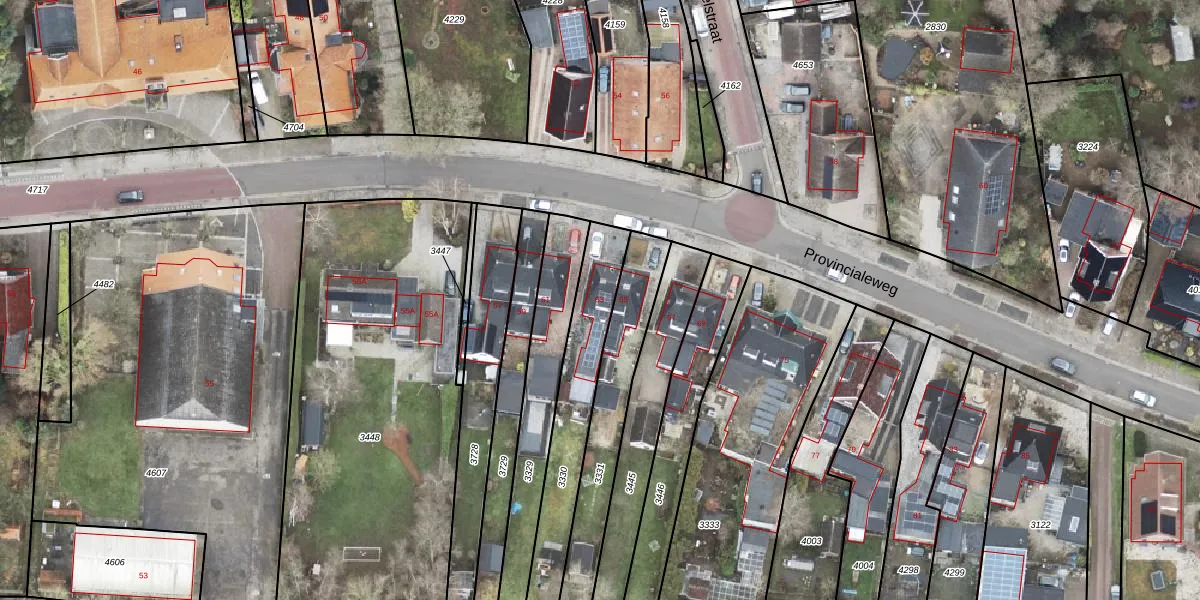 Provincialeweg 63 is gelegen op kadastraal perceel SDA00G3330. Deze kadastrale aanduiding is uniek en wordt gebruikt door het Kadaster om eigendomsrechten en andere zakelijke rechten vast te leggen. Het perceel maakt onderdeel uit van de kadastrale gemeente Scheemda.