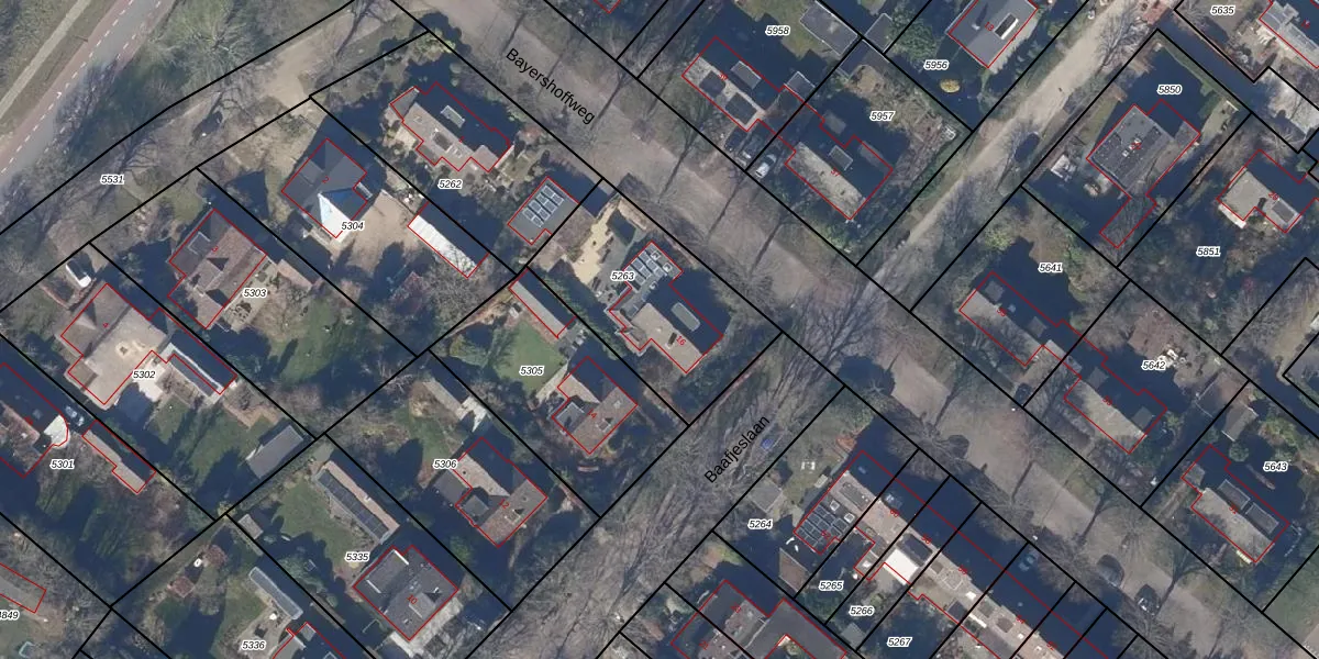 Baafjeslaan 16 is gelegen op kadastraal perceel HLO00A5263. Deze kadastrale aanduiding is uniek en wordt gebruikt door het Kadaster om eigendomsrechten en andere zakelijke rechten vast te leggen. Het perceel maakt onderdeel uit van de kadastrale gemeente Heiloo.