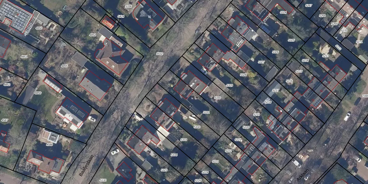 Het perceel waarop Baafjeslaan 9 staat heeft een oppervlakte van 449 m². Dit is een groot perceel. De perceeloppervlakte wordt geregistreerd door het Kadaster. Gedetailleerde informatie over de maten van dit perceel kunt u vinden in het rapport Kadastrale kaart met maatvoering van Baafjeslaan 9.