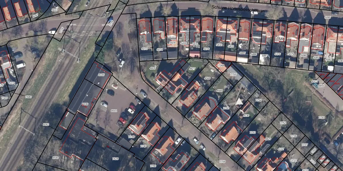 Gebruik de zoekbalk of klik op een perceel voor informatie over de adressen binnen dit perceel.