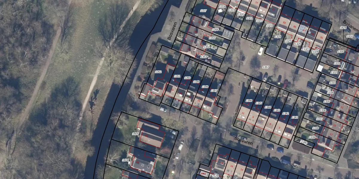 Het perceel waarop Bosvaren 19 staat heeft een oppervlakte van 154 m². Dit is een middelgroot perceel. De perceeloppervlakte wordt geregistreerd door het Kadaster. Gedetailleerde informatie over de maten van dit perceel kunt u vinden in het rapport Kadastrale kaart met maatvoering van Bosvaren 19.