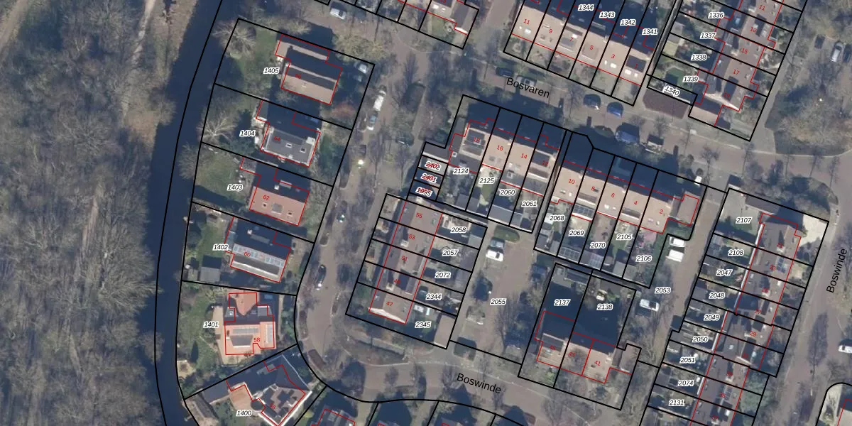 Het perceel waarop Boswinde 55 staat heeft een oppervlakte van 141 m². Dit is een middelgroot perceel. De perceeloppervlakte wordt geregistreerd door het Kadaster. Gedetailleerde informatie over de maten van dit perceel kunt u vinden in het rapport Kadastrale kaart met maatvoering van Boswinde 55.