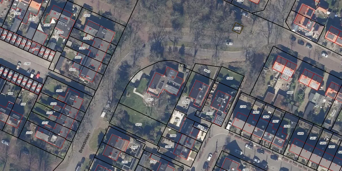 Het perceel waarop Breedelaan 59 staat heeft een oppervlakte van 966 m². Dit is een groot perceel. De perceeloppervlakte wordt geregistreerd door het Kadaster. Gedetailleerde informatie over de maten van dit perceel kunt u vinden in het rapport Kadastrale kaart met maatvoering van Breedelaan 59.