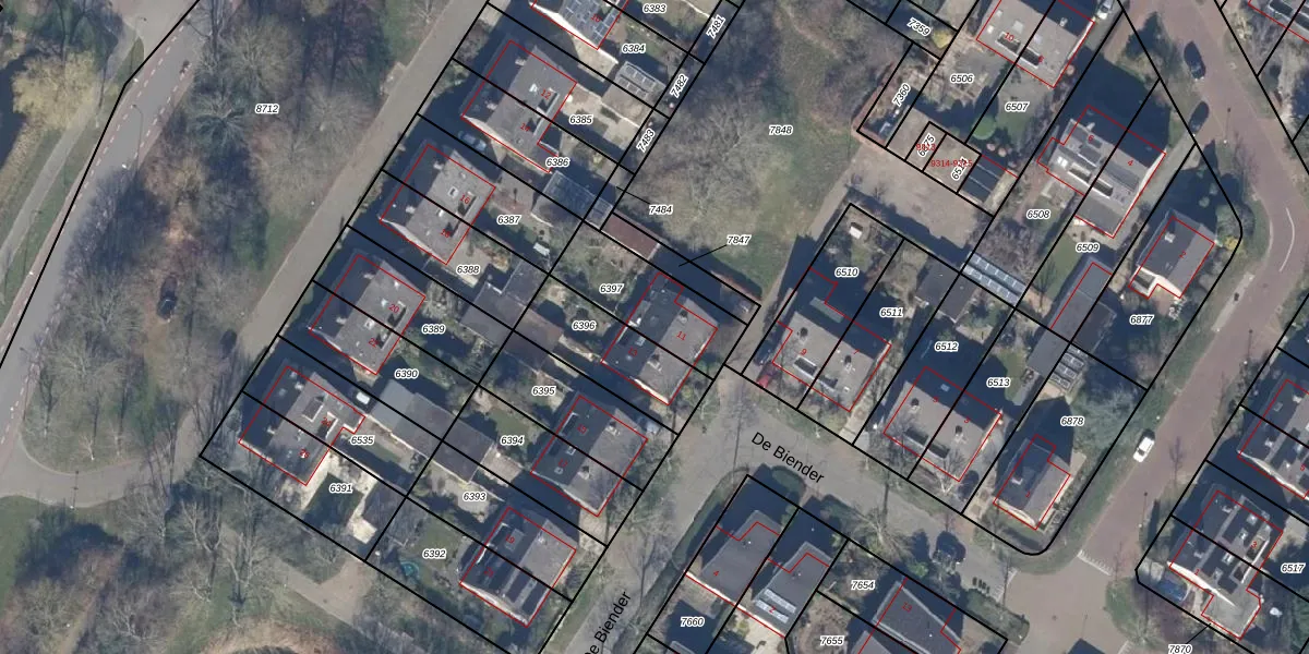 Het perceel waarop De Biender 11 staat heeft een oppervlakte van 300 m². Dit is een groot perceel. De perceeloppervlakte wordt geregistreerd door het Kadaster. Gedetailleerde informatie over de maten van dit perceel kunt u vinden in het rapport Kadastrale kaart met maatvoering van De Biender 11.