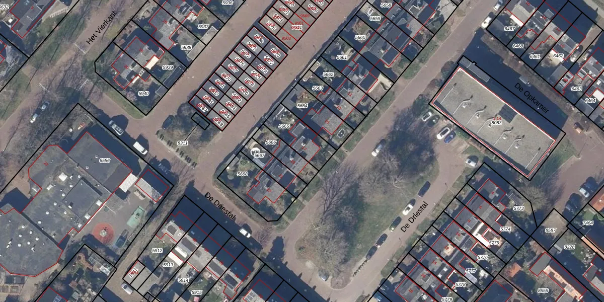 Het perceel waarop De Driestal 17 staat heeft een oppervlakte van 218 m². Dit is een middelgroot perceel. De perceeloppervlakte wordt geregistreerd door het Kadaster. Gedetailleerde informatie over de maten van dit perceel kunt u vinden in het rapport Kadastrale kaart met maatvoering van De Driestal 17.