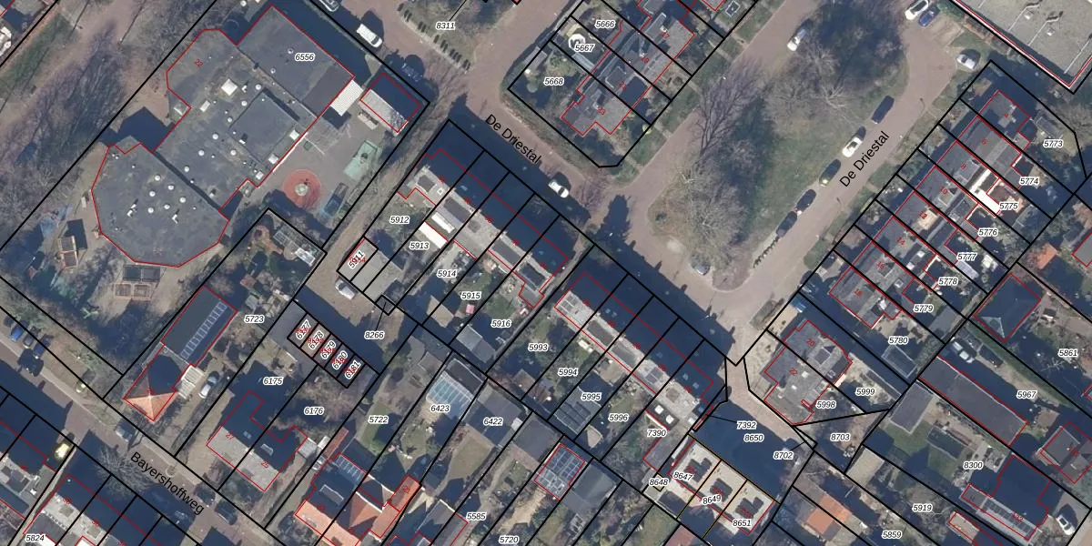 Het perceel waarop De Driestal 34 staat heeft een oppervlakte van 257 m². Dit is een middelgroot perceel. De perceeloppervlakte wordt geregistreerd door het Kadaster. Gedetailleerde informatie over de maten van dit perceel kunt u vinden in het rapport Kadastrale kaart met maatvoering van De Driestal 34.