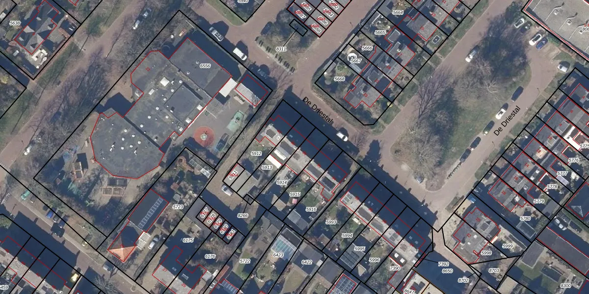 Het perceel waarop De Driestal 40 staat heeft een oppervlakte van 206 m². Dit is een middelgroot perceel. De perceeloppervlakte wordt geregistreerd door het Kadaster. Gedetailleerde informatie over de maten van dit perceel kunt u vinden in het rapport Kadastrale kaart met maatvoering van De Driestal 40.